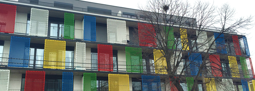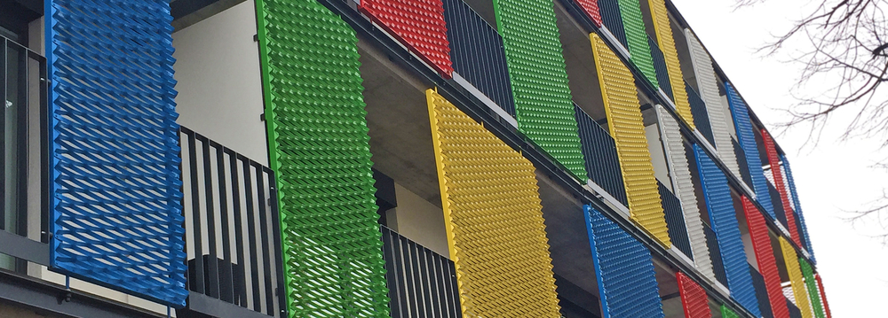 Az épület homlokzatának fő kifejező elemei az expandált lemezből kialakított fénytörők lettek. Az építészek, szakértőinkkel együtt, az árnyékoló panelek elkészítéséhez az alumínium MR 200x72x22x3 mm típusú expandált lemezeket választották.