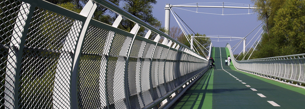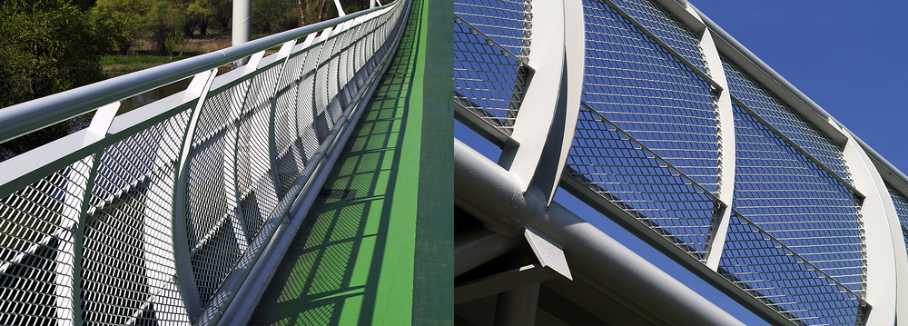 A teljes híd 955 méter hosszából az acél hídszerkezet 525 méter. Ezért kulcsfontosságú volt, hogy a korlát kitöltéséhez abszolút megbízható és vizuálisan mutatós anyagot válasszunk. Ezért az építészeknek a rombusz nyílású MR 90x31,5x4x3 mm-es expandált lemezt javasoltuk. Egy ilyen korlátbelső nagy előnye a tömör szilárdság de egyben légies hatás.
